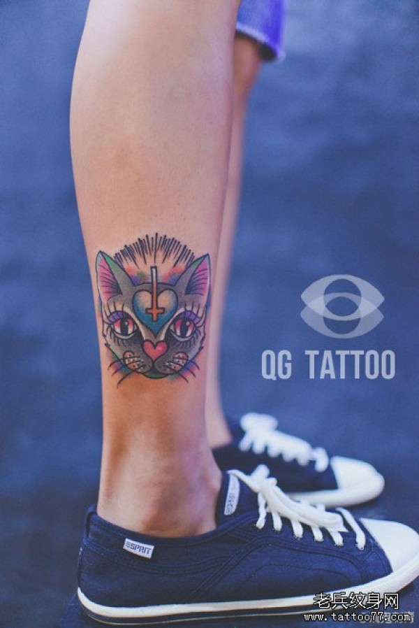 腿部潮流可爱的猫咪纹身图案