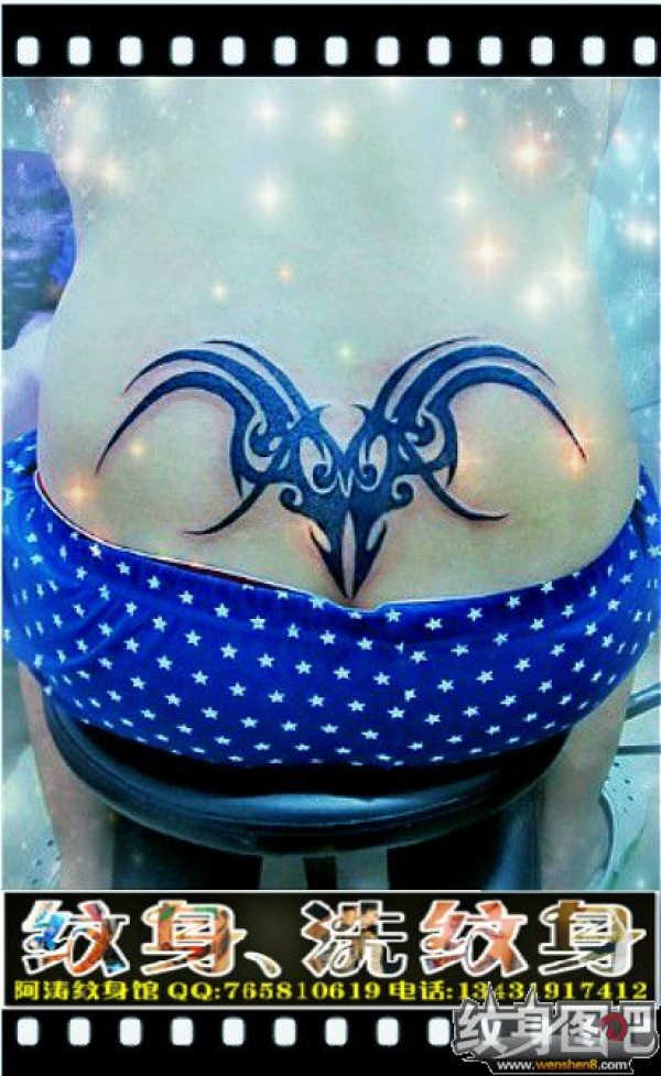 分享一款腰部时尚性感的蝶恋花纹身图案_腰部纹身图案大全_纹身图吧