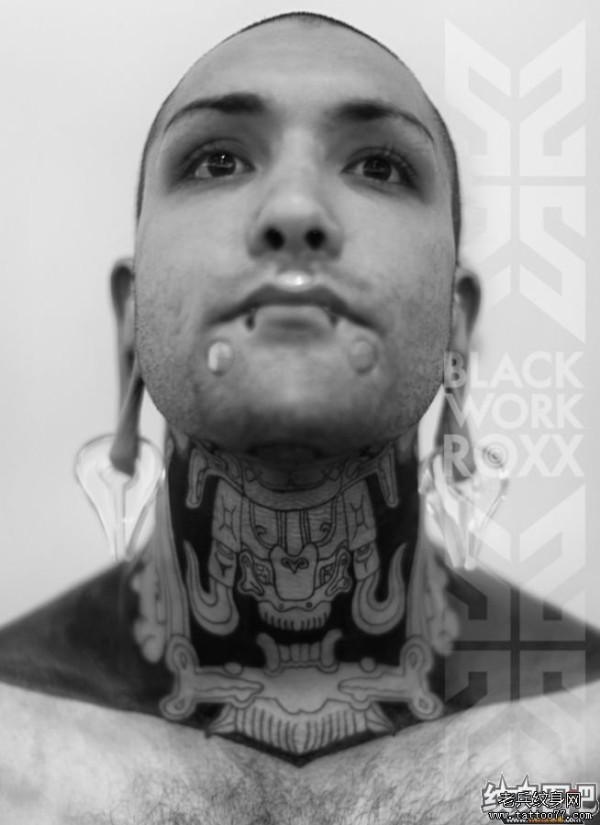男子很酷的颈部脖子黑白图腾纹身欣赏