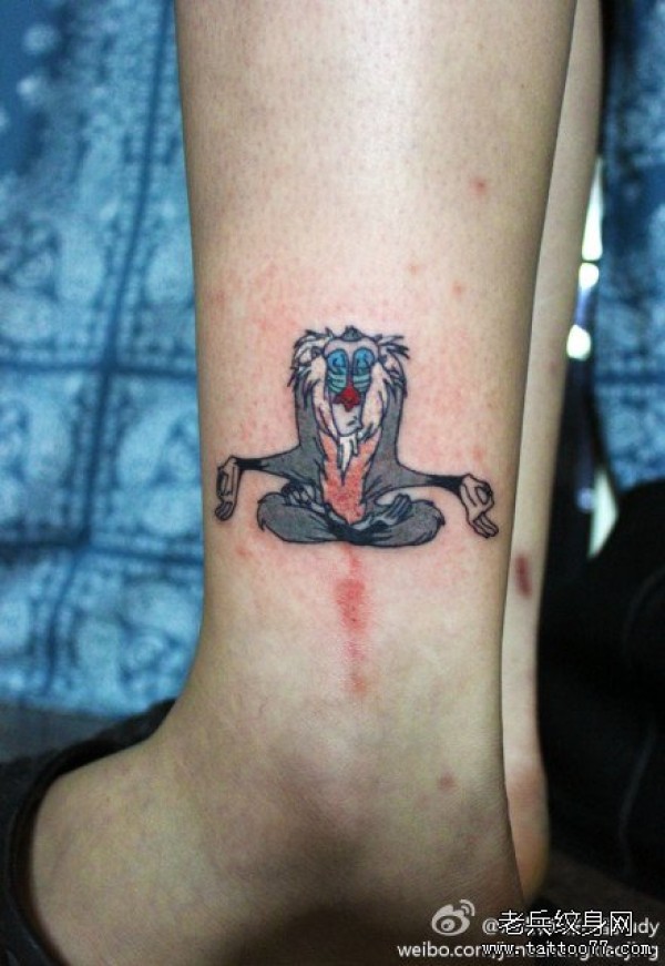 腿部潮流经典的卡通猴子纹身图案