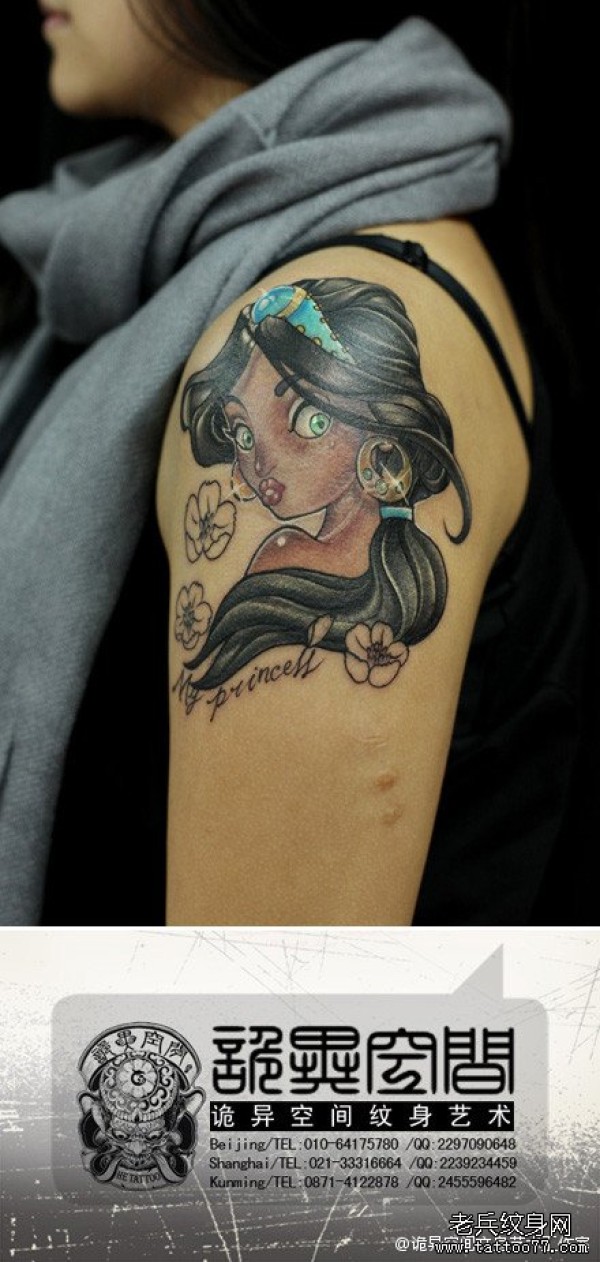 手臂漂亮的阿拉丁神灯里的小公主纹身图案
