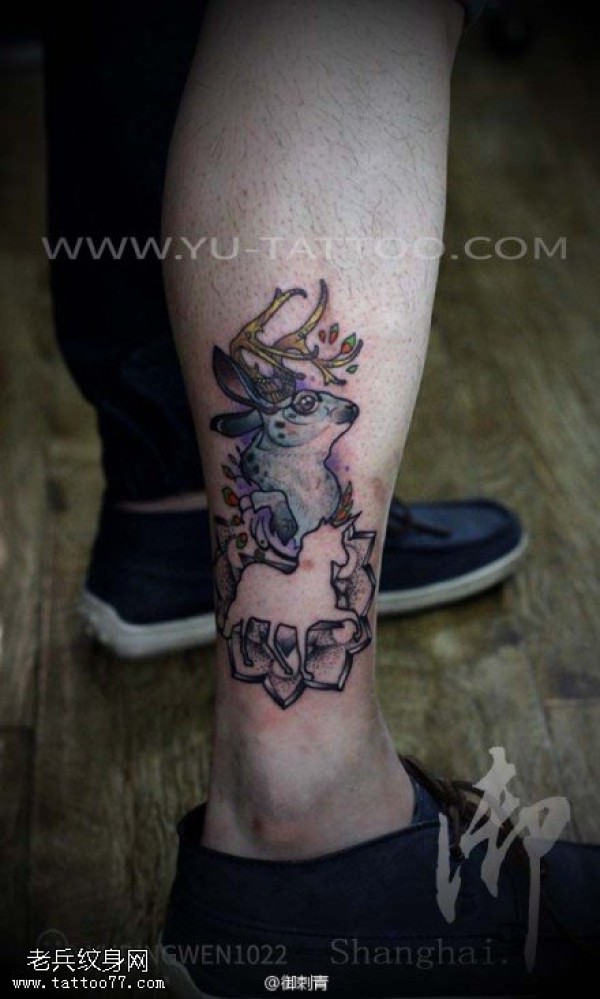 腿部彩色羚羊纹身图案