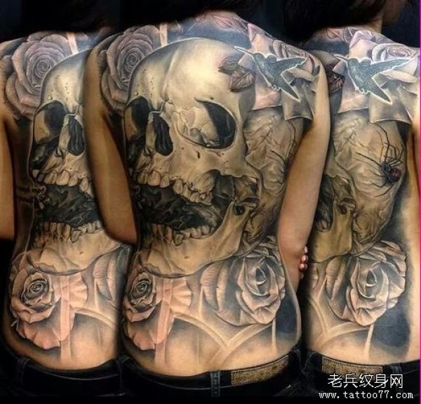 性感女生满背创意文身作品