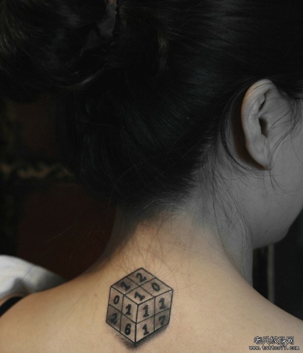 颈部魔方文身图案