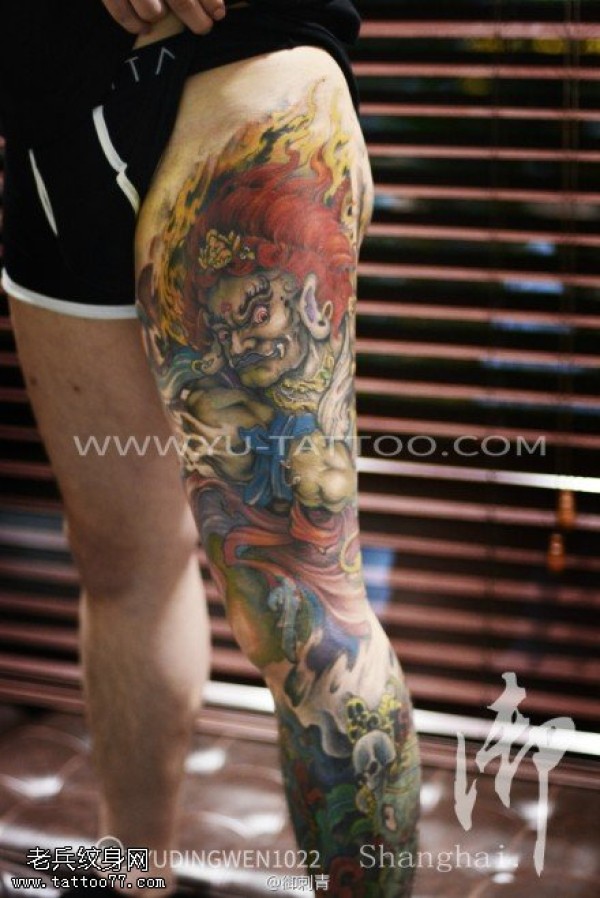 传统花腿纹身--18张传统风格的大花腿纹身图案作品