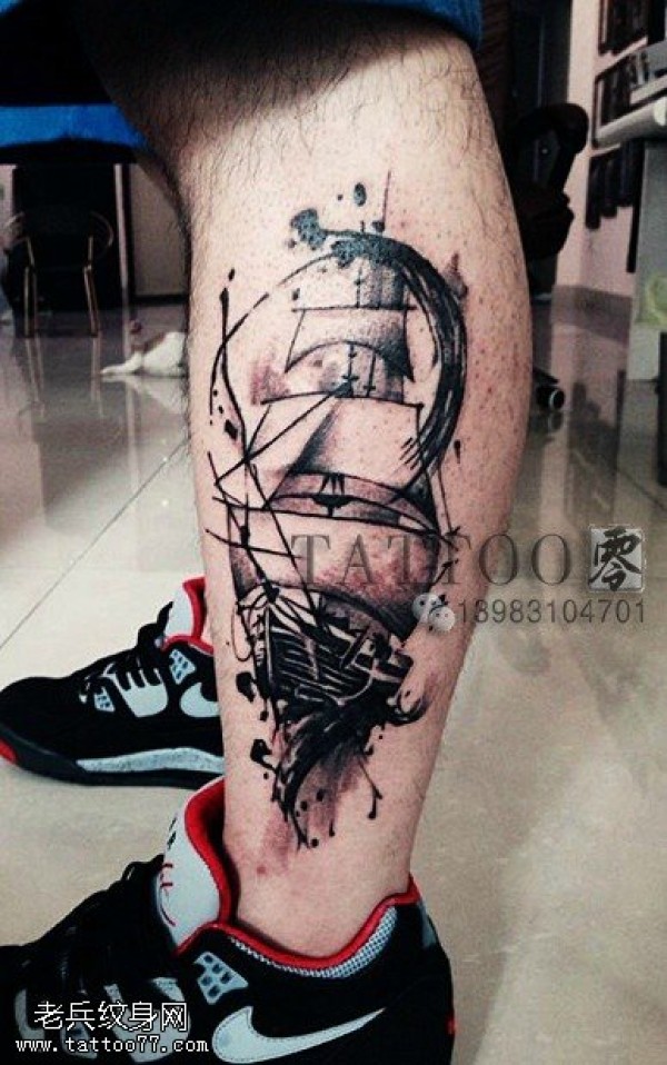 花腿纹身--一组大黑腿纹身图案作品欣赏