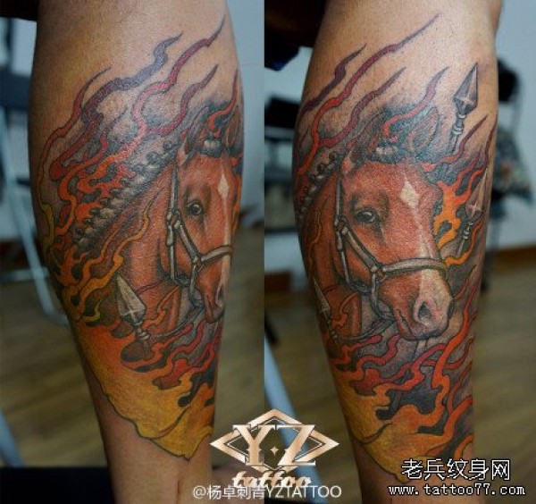 花腿纹身--一组大黑腿纹身图案作品欣赏