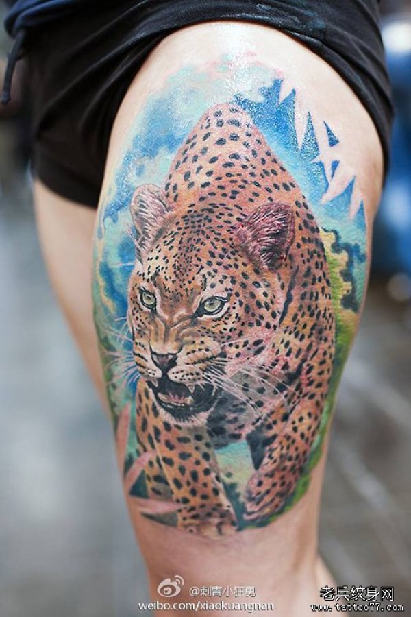 传统花腿纹身--18张传统风格的大花腿纹身图案作品