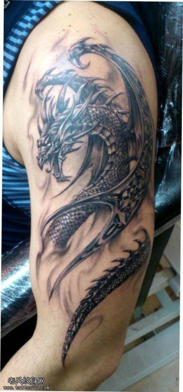 龙纹身手稿_一组老传统黑灰龙手稿纹身图案