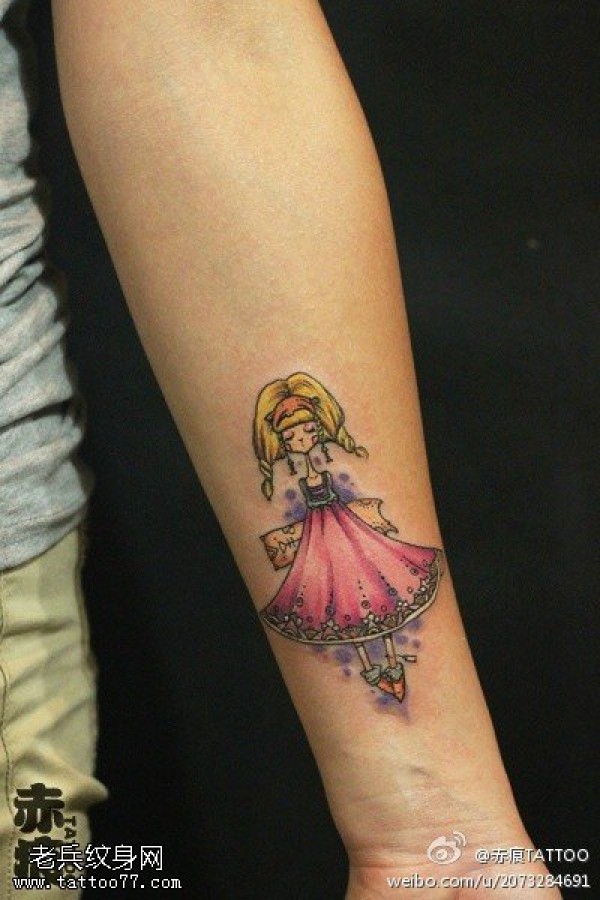 女生手臂彩色娃娃纹身图案