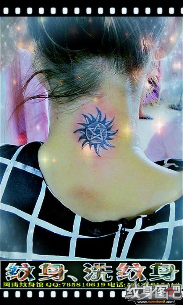 后颈部纹身小图--9张女生脖子后颈处的简约纹身图案