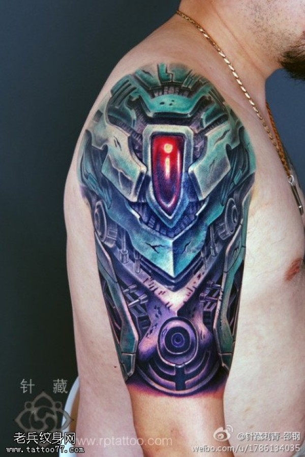 手臂彩色3D机械纹身图案