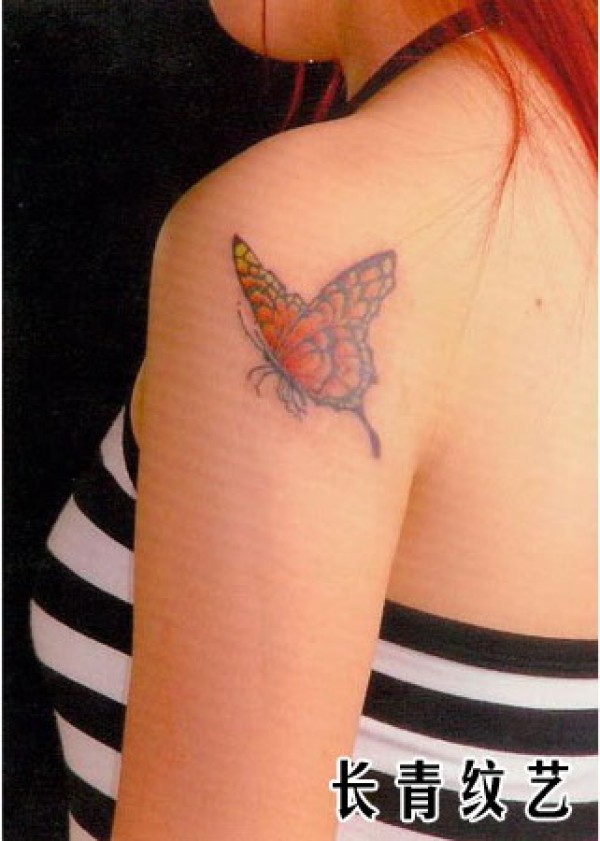 美女手臂蝴蝶纹身图案-阜阳纹身图吧分享