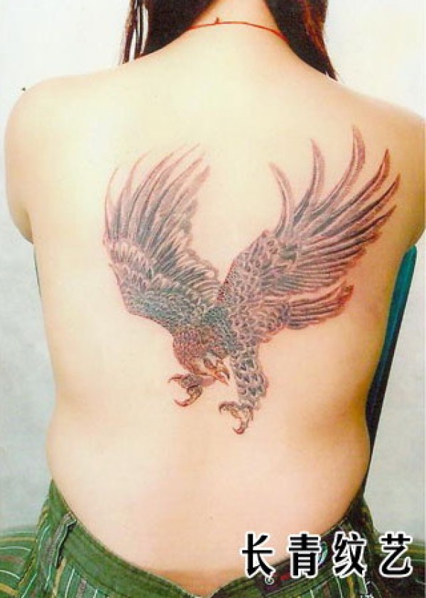 美女后背老鹰纹身图案-阜阳纹身图吧分享