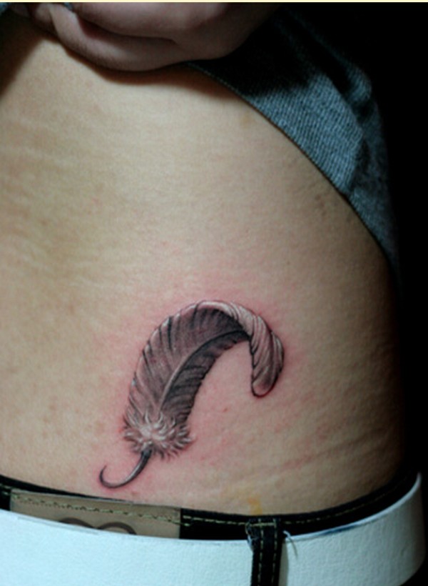 女生后腰纹身黑白灰风格抽象线条纹身图案