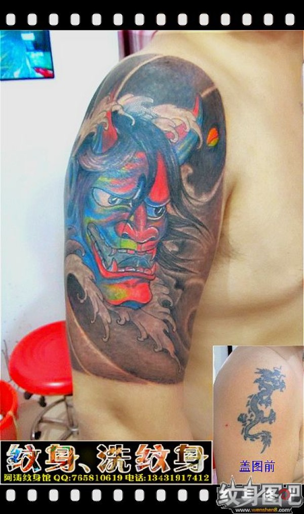 能面万媚纹身手稿_52张日式能剧面具纹身手稿图案素材欣赏