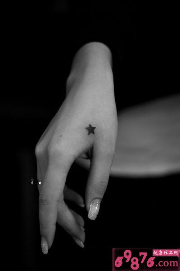 虎口简洁黑白星星纹身