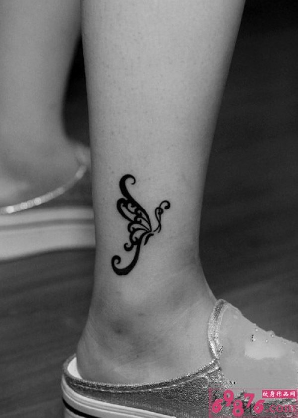 黑白蝴蝶图腾脚踝纹身