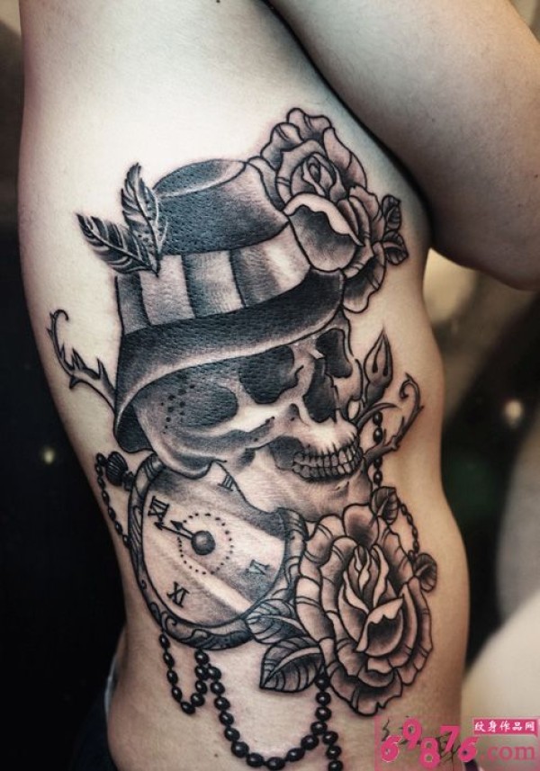 侧腰女骷髅刺青图案图片_骷髅纹身图案大全_纹身图吧