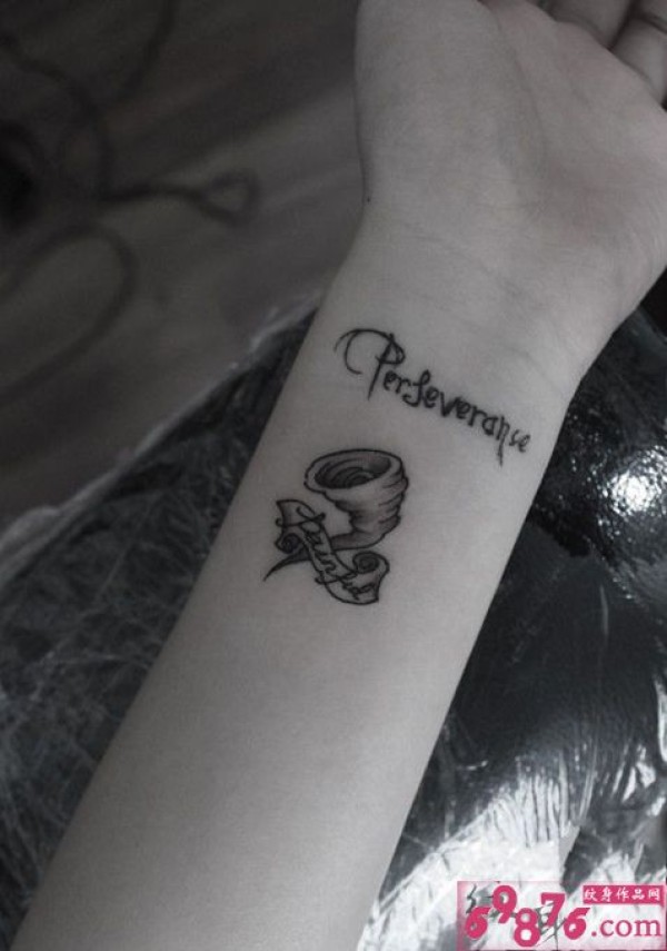 个性龙卷风英文黑白手腕纹身