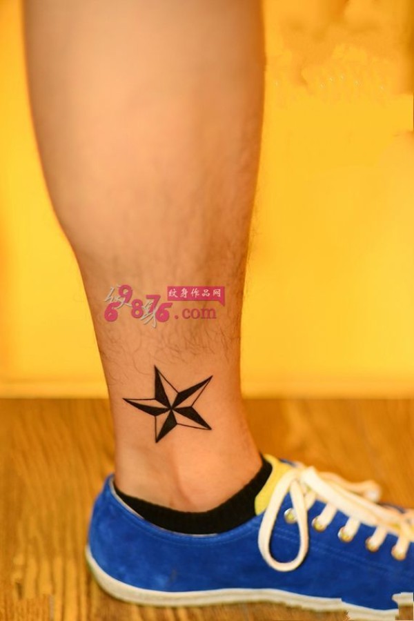 黑白立体五角星脚踝纹身