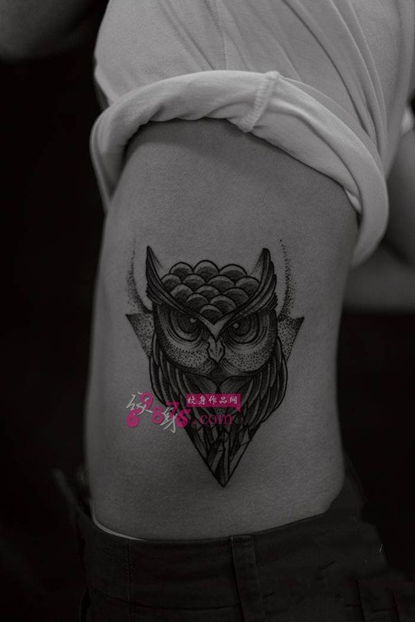 欧美风猫头鹰侧腰纹身