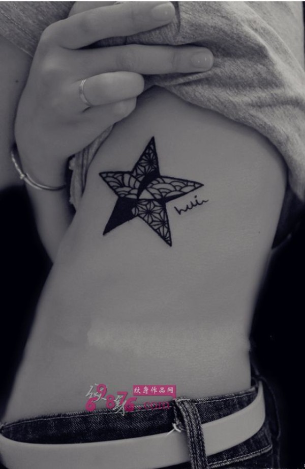 简洁星星黑白腰部纹身