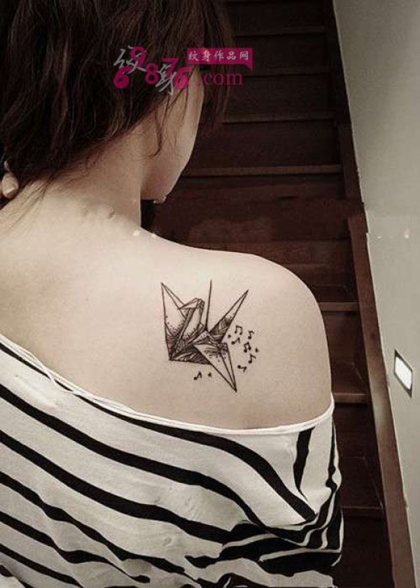 香肩黑白千纸鹤唯美纹身