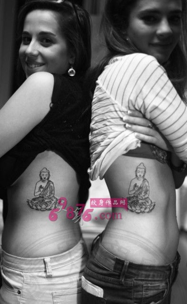 女生后腰纹身黑白灰风格抽象线条纹身图案