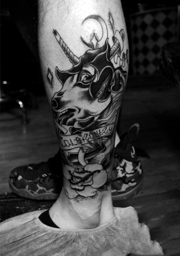 花腿纹身--一组大黑腿纹身图案作品欣赏