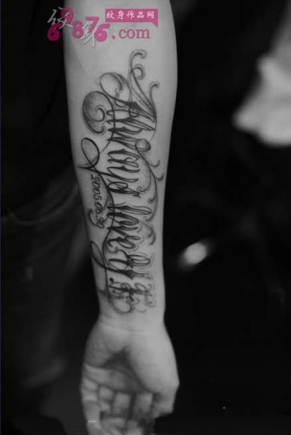 创意奇卡诺花体英文手臂纹身