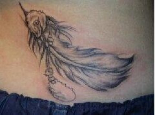 女生后腰纹身黑白灰风格抽象线条纹身图案