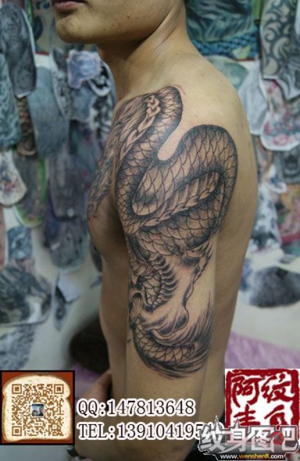 日式手彫刺青作品—半甲龙很感谢客户认可手彫刺青,手彫是日本纹身的手工雕刻技术,时间可以追溯到日本17世纪的江户时代。19世纪,手彫技术被日本黑帮挪用,被用作入会仪式,象征着从此就是江湖中人。在日式传统