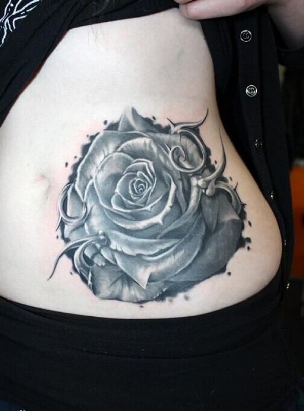 女生后腰纹身黑白灰风格抽象线条纹身图案