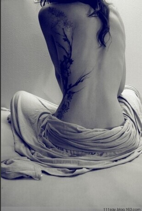 分享一款腰部时尚性感的蝶恋花纹身图案_腰部纹身图案大全_纹身图吧