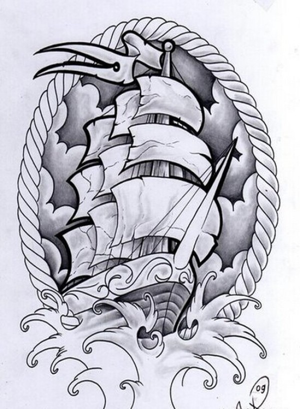 龙纹身手稿_一组老传统黑灰龙手稿纹身图案
