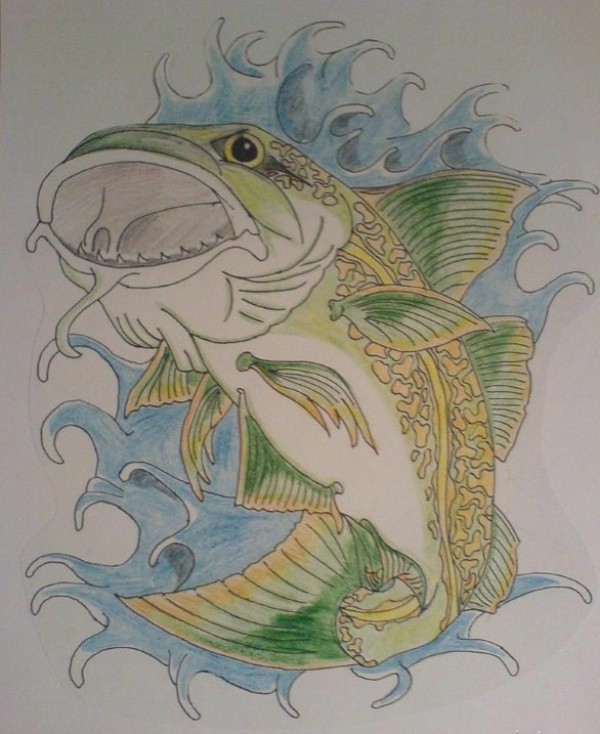 日式大嘴鲤鱼纹身手稿