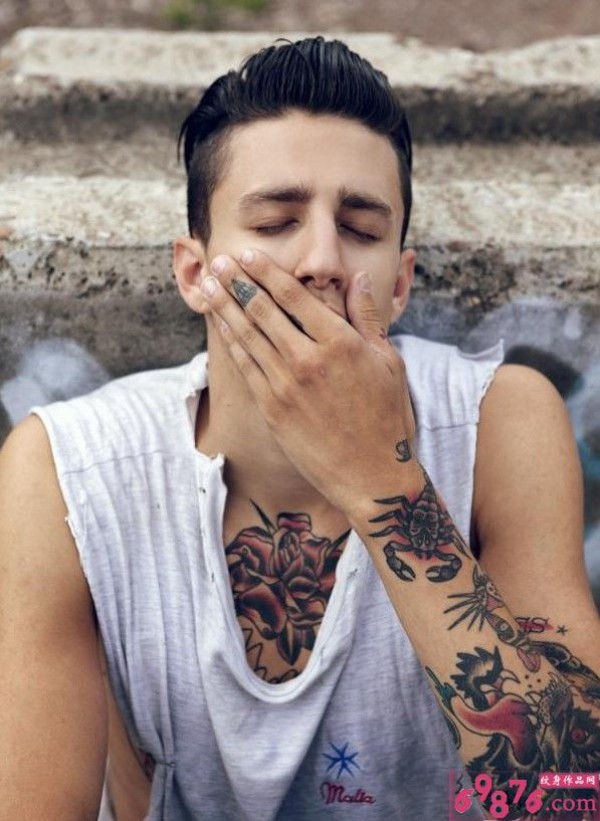 男生手臂胸前时尚纹身