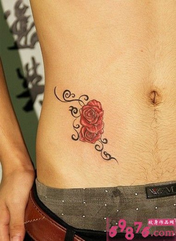 分享一款腰部时尚性感的蝶恋花纹身图案_腰部纹身图案大全_纹身图吧