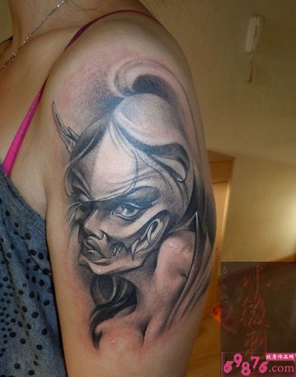能面万媚纹身手稿_52张日式能剧面具纹身手稿图案素材欣赏