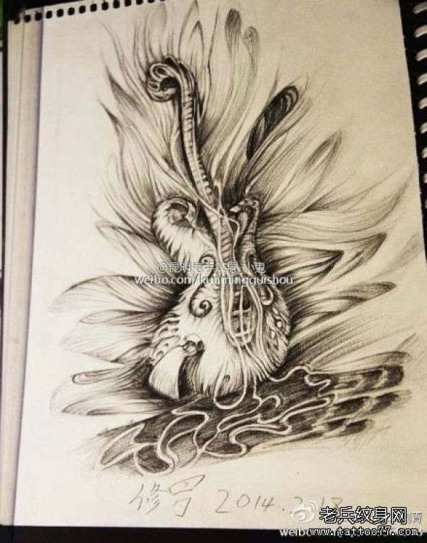 双鱼座纹身手稿_45张十二星座之双鱼手稿纹身图案