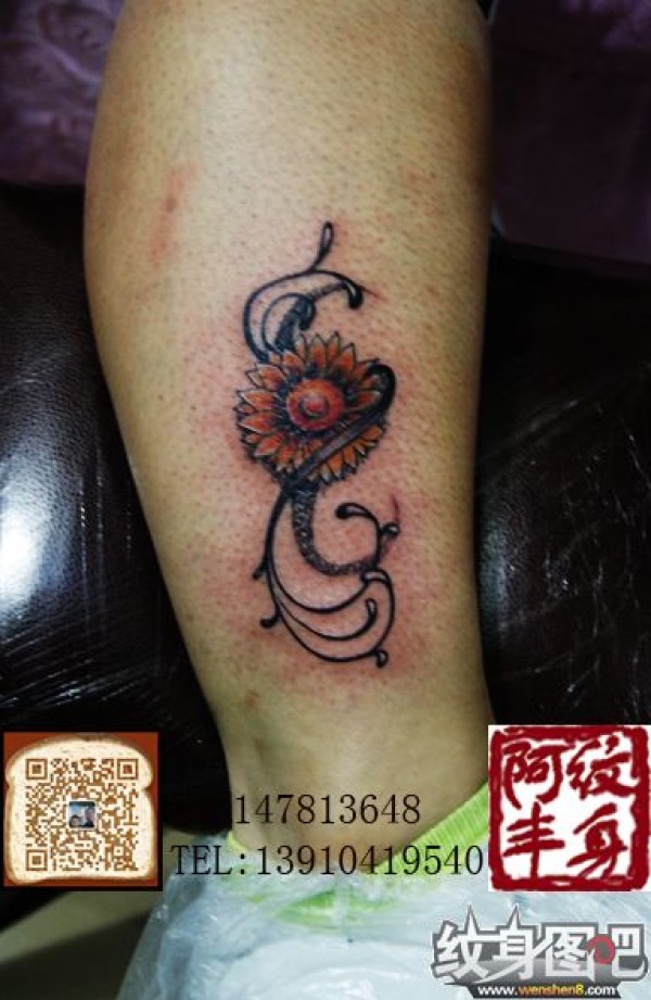 腿部纹身 向日葵纹身图案 阿丰纹身