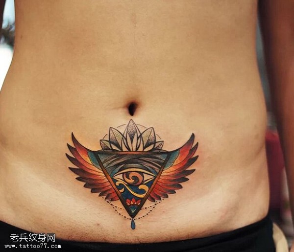 腹部彩色上帝之眼翅膀纹身图片