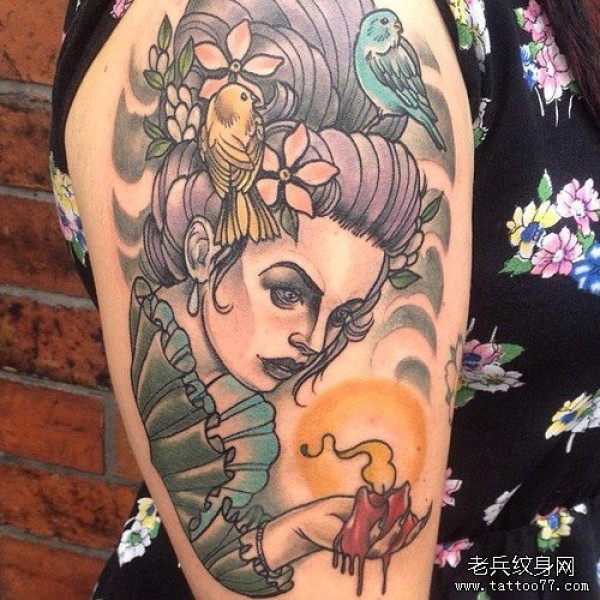 手臂彩色女郎纹身图案