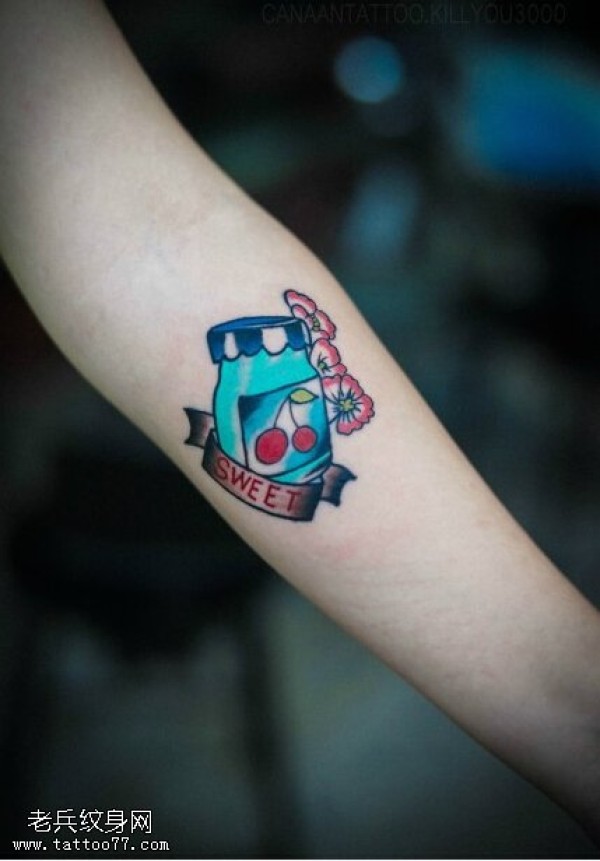 彩色的可爱卡通纹身小图美味的食物纹身图案