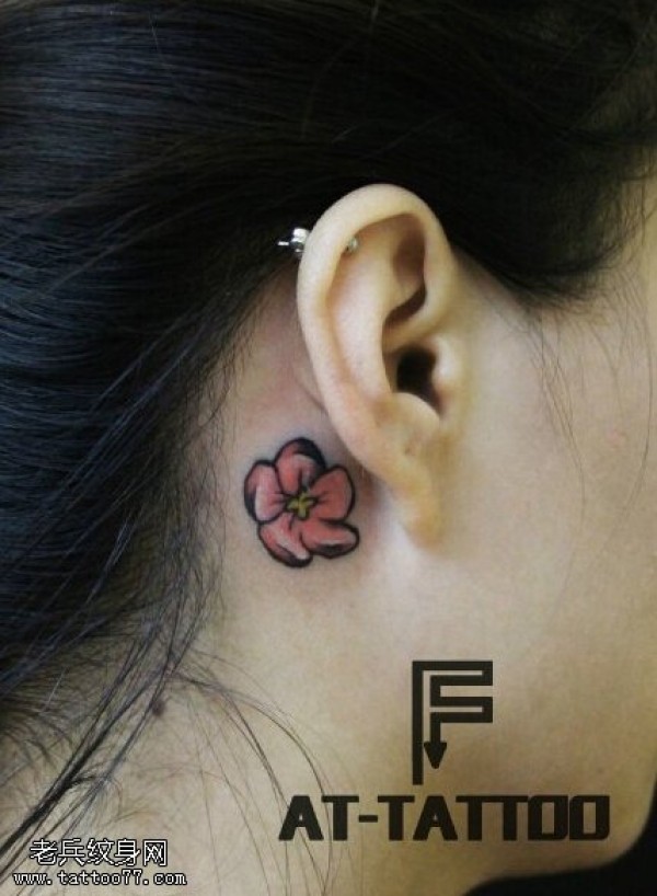 女生耳后小清晰彩色花纹身图片由纹身提供