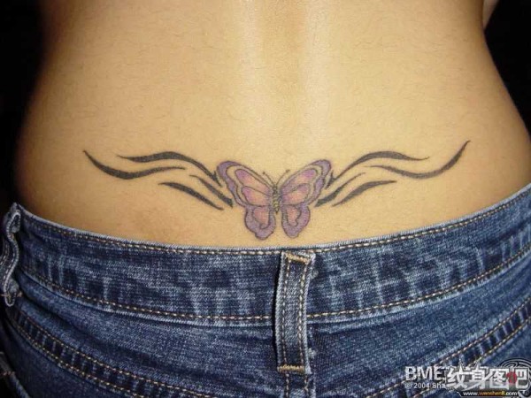 分享一款腰部时尚性感的蝶恋花纹身图案_腰部纹身图案大全_纹身图吧