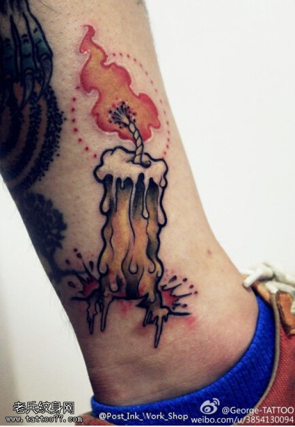 脚踝彩色蜡烛纹身图片