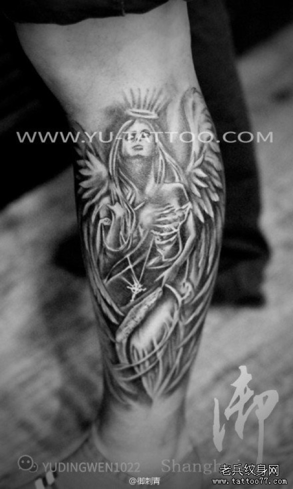 腿部天使翅膀纹身图片