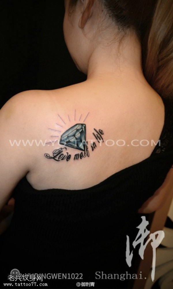 女生背部彩色钻石纹身图片由纹身图吧提供